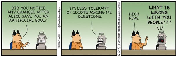 Überraschender Weise sieht Tesla- und SpaceX-Chef Elon Musk in der Künstlichen Intelligenz ein Risiko für den Fortbestand der menschlichen Zivilisation. Wenn intelligente Systeme in der Lage wären, sich eigene Ziele zu setzen, könnte es gefährlich werden. Man sollte schon heute die KI gesetzlich regeln und damit in die Schranken weisen (*Q6).